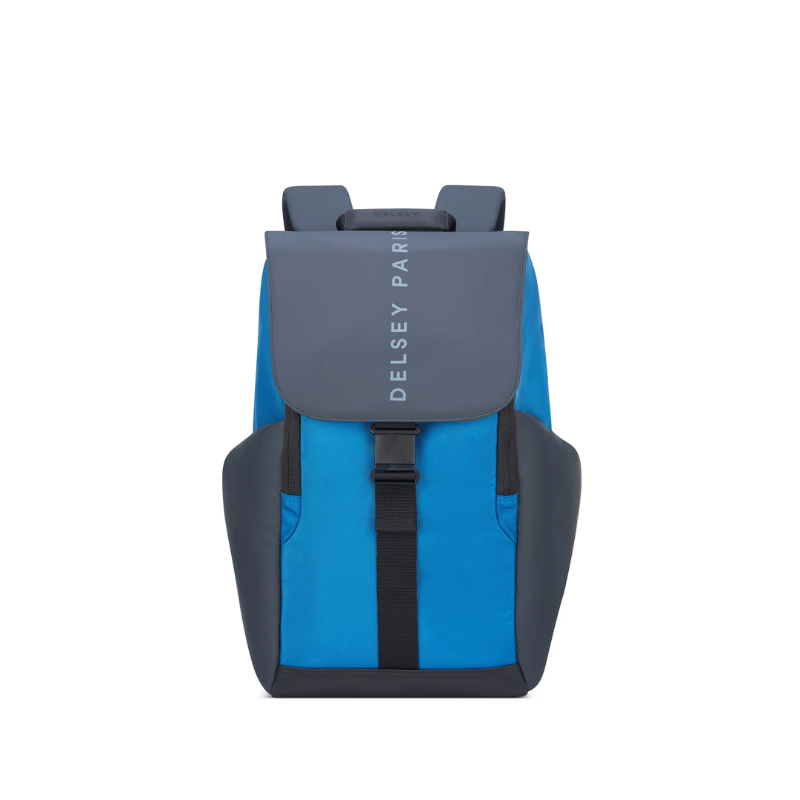 the DELSEY Securflap Backpack 15" is a sleek, modern backpack designed for secure urban travel and daily use. Featuring a unique flap design with a hidden, push-button lock system, it keeps your belongings protected while maintaining a minimalist look. The padded interior fits laptops up to 15.6", with additional compartments for tablets, accessories, and essentials. Made from durable water-resistant fabric, it also includes a USB port for on-the-go charging, padded shoulder straps, and a smart sleeve to attach to luggage—making it perfect for commuting or city adventures.